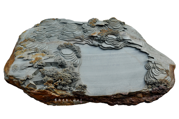 何以见得?曹厂长说,史书载:溪砚质地细腻,坚而不顽,抚之生润;储墨不腐,积水不涸;悬之扣之,其声如磬;纹理多变,石色五彩,呈碧绿、绛红、橙黄、淡青、紫罗兰诸色。随即,曹厂长托起一方呵气,果然云影顿生,清雅莹润。拍之,其声清悦,木之质感。色呈翠绿,罗纹缠密中含豆色天眼数枚,饰以金线银线。原来此品既邓显鹤所谓的“双峰绿”,产于大坝水下深处,每年枯水季节,在雪花滩打捞作业,为不可多得、资质居上的溪石极品。曹厂长又指着另几方说,这些是天然砚,采石后不加斧凿,或不精雕细刻,其取粗糙状态,主要供观赏、收藏用,也称随形砚。只见奇峰竞拔,浪永云腾,海草悠悠,根根攀攀,完整的保持原生态状态。