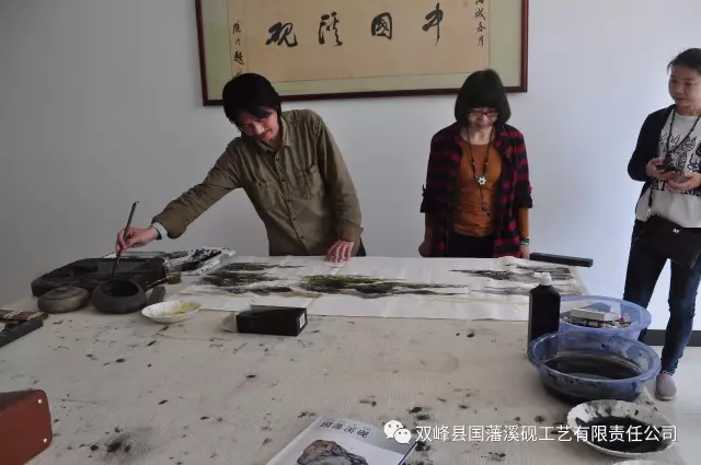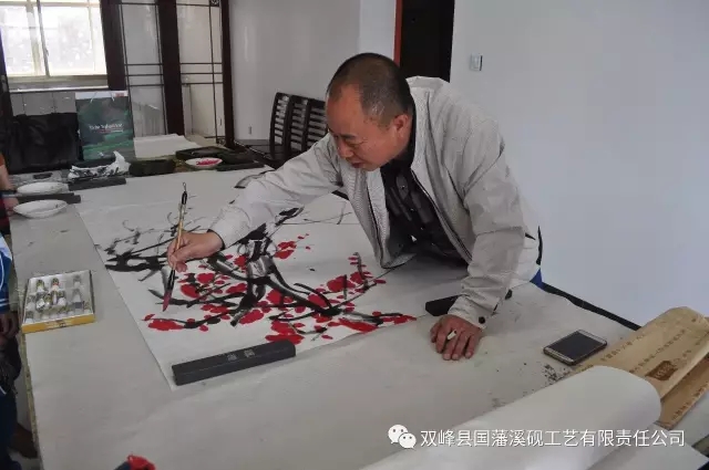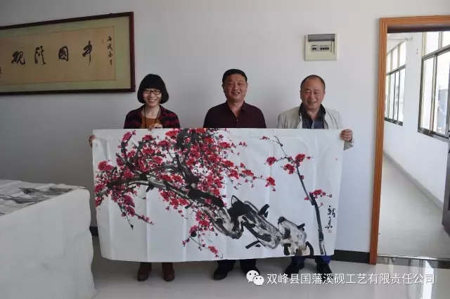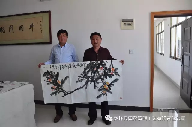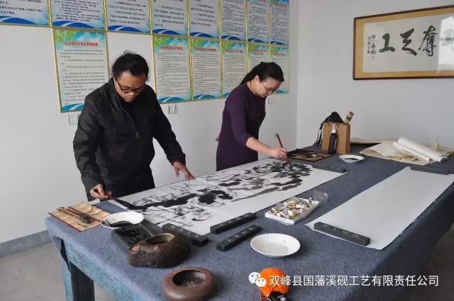 在公司一楼会客厅,画家们听取了董事长关于国藩溪砚历史文化、发展历程、未来愿景等情况介绍后,先后参观了溪砚展厅、精品馆、荣誉室、溪砚生产车间等,在参观的过程中,画家们对溪砚选材独特、质地细腻、造型精美、创意新颖等方面赞不绝口,也为企业在艰难中发展文化、保护非遗做出的努力和贡献给予了充分肯定,更为企业将来发展愿景以弘扬中华砚文化为己任感到由衷钦佩。