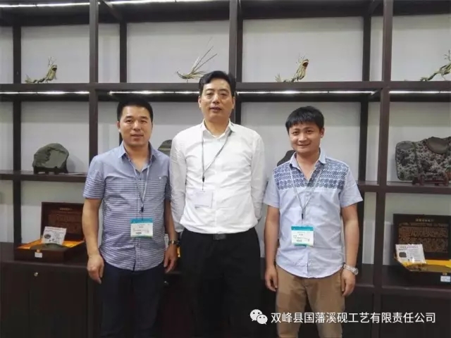 图为市委常委、宣传部长吴建平(中)和国藩溪砚参展人员
